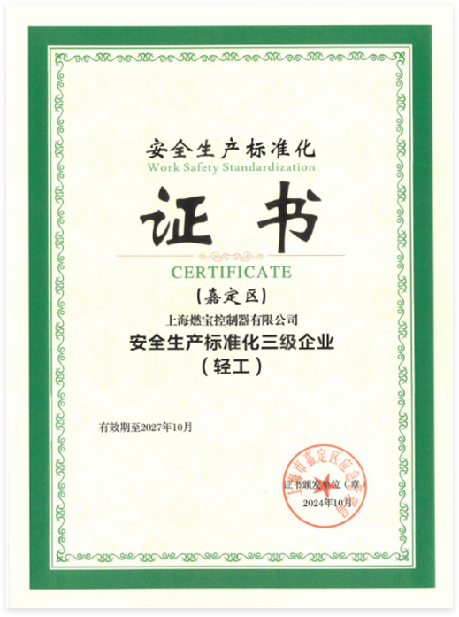 获得嘉定区应急管理局安全生产标准化三级企业(轻工)证书。